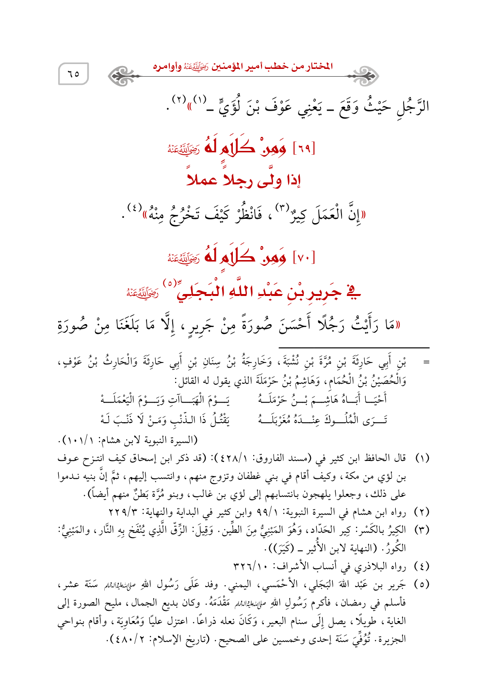 في جَرِيرِ بْنِ عَبْدِ اللَّهِ الْبَجَلِيِّ (¬5) - رَضِيَ اللَّهُ عَنْهُ -