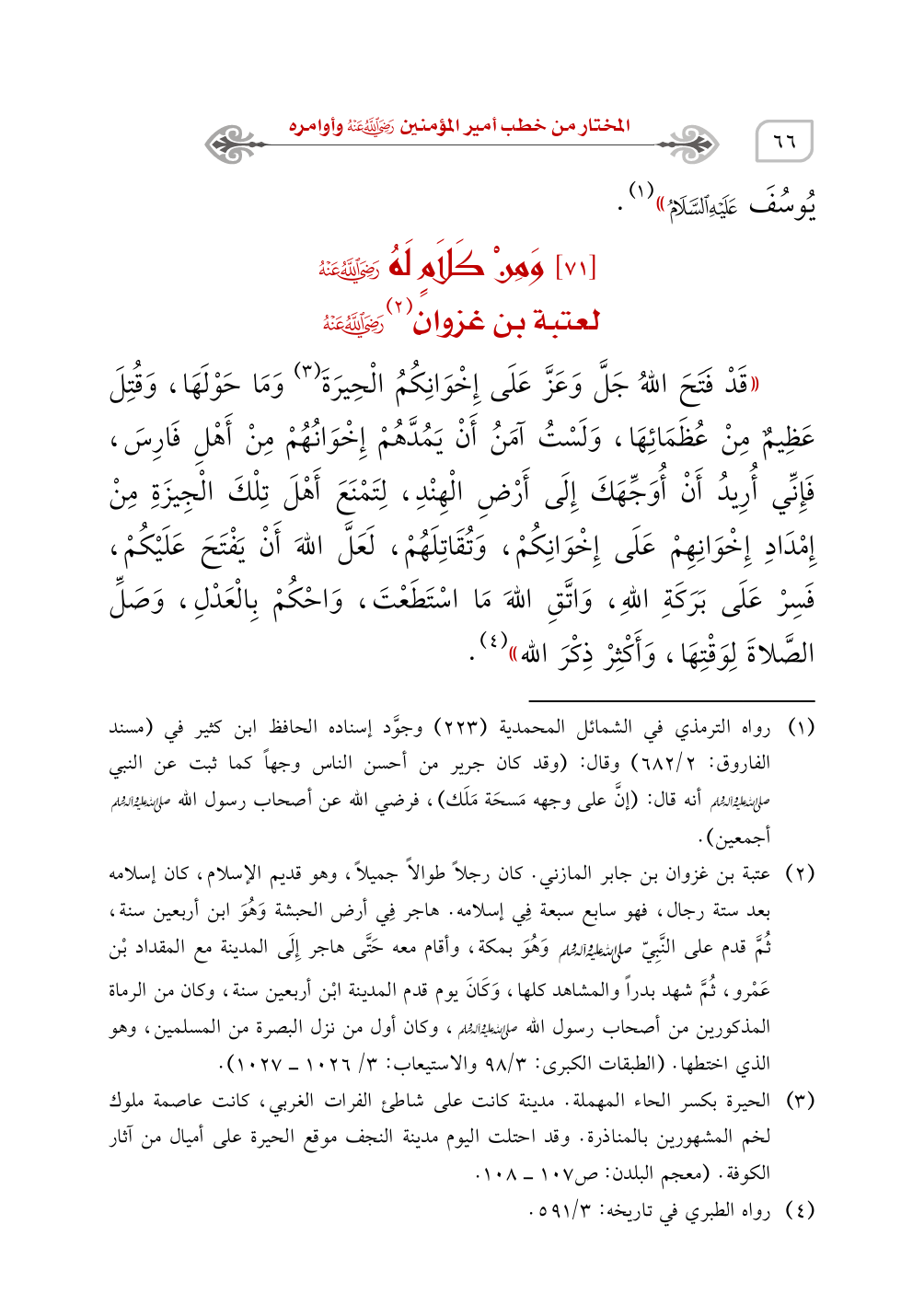 لعتبة بن غزوان (¬2) - رَضِيَ اللَّهُ عَنْهُ -