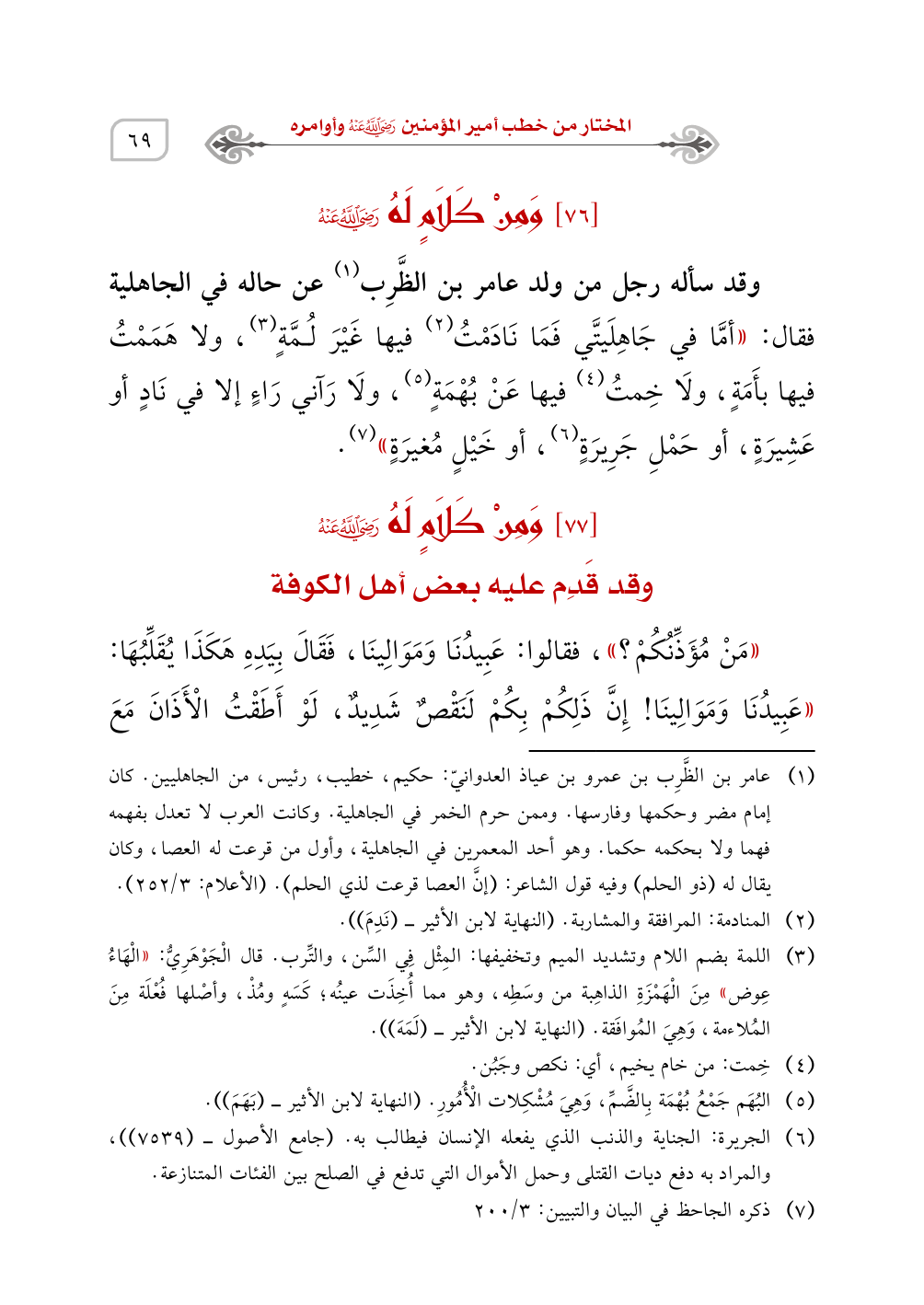 [77] وَمِنْ كَلاَمٍ لَهُ - رَضِيَ اللَّهُ عَنْهُ -