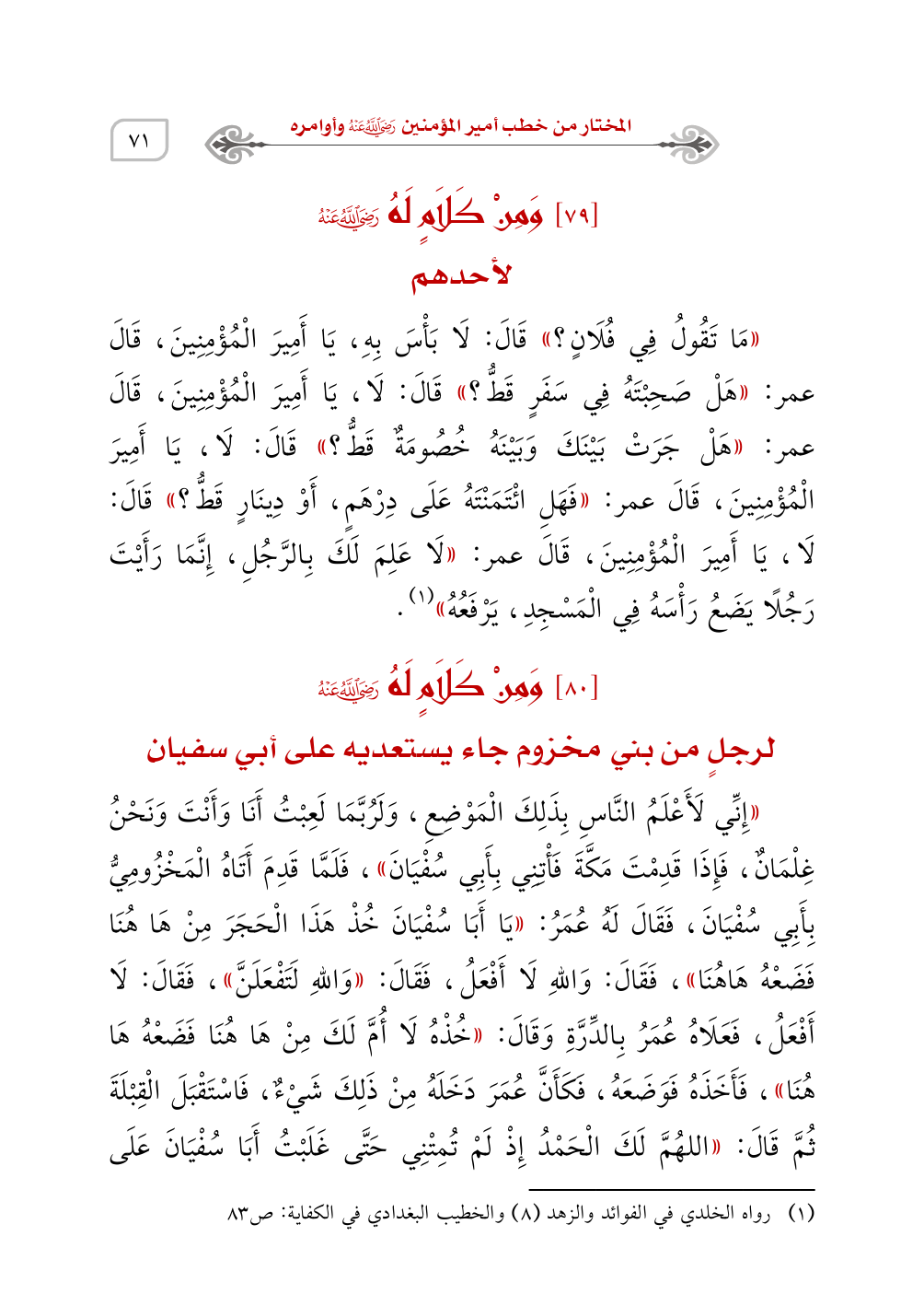 [80] وَمِنْ كَلاَمٍ لَهُ - رَضِيَ اللَّهُ عَنْهُ -