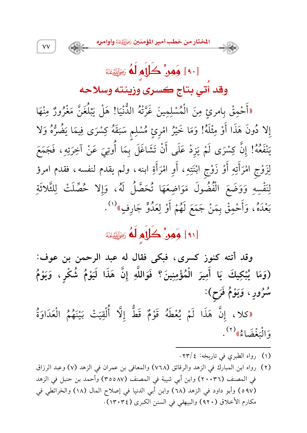 (¬2) رواه ابن المبارك في الزهد والرقائق (768) والمعافى بن عمران في الزهد (7) وعبد الرزاق في المصنف (20036) وابن أبي شيبة في المصنف (35587) وأحمد بن حنبل في الزهد (597) وأبو داود في الزهد (68) وابن أبي الدنيا في إصلاح المال (18) والخرائطي في مكارم الأخلاق (920) والبيهقي في السنن الكبرى (13034).