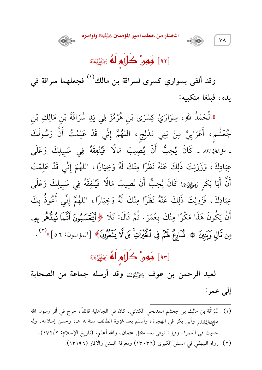 لعبد الرحمن بن عوف - رَضِيَ اللَّهُ عَنْهُ - وقد أرسله جماعة من الصحابة إلى عمر: