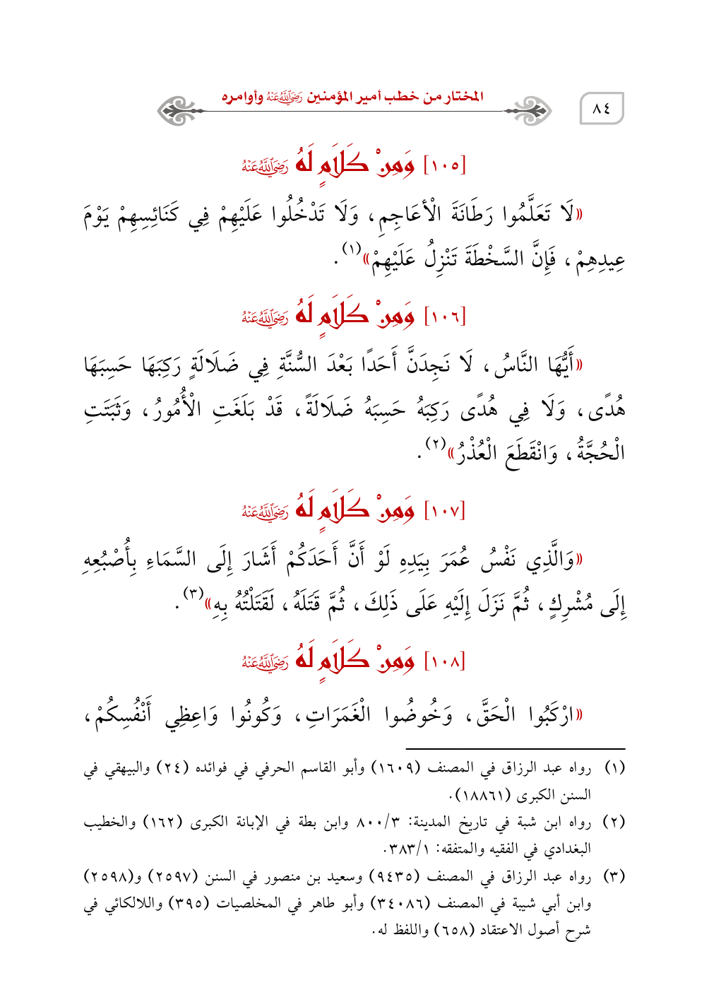 (¬3) رواه عبد الرزاق في المصنف (9435) وسعيد بن منصور في السنن (2597) و (2598) وابن أبي شيبة في المصنف (34086) وأبو طاهر في المخلصيات (395) واللالكائي في شرح أصول الاعتقاد (658) واللفظ له.
