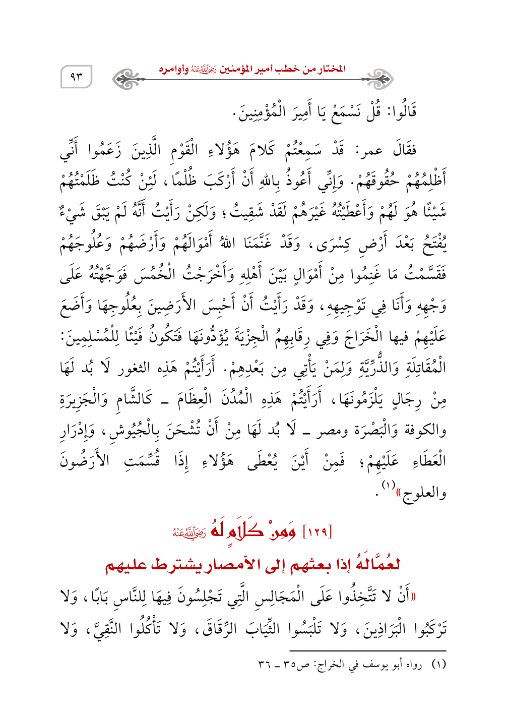 (¬1) رواه أبو يوسف في الخراج: ص35 - 36