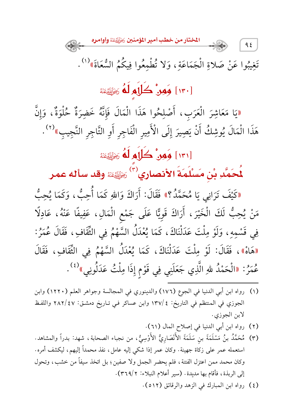 لمُحَمَّدِ بْنِ مَسْلَمَةَ الأنصاري (¬3) - رَضِيَ اللَّهُ عَنْهُ - وقد سأله عمر