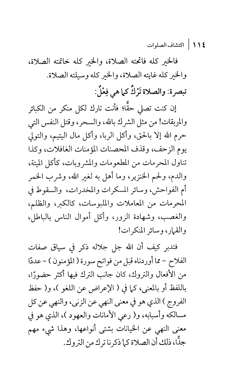 تبصرة: والصلاة تَرْكٌ كما هي فِعْلٌ: