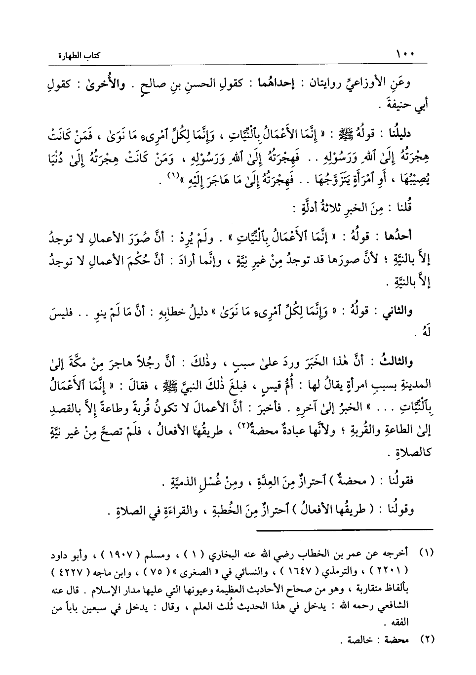 دليلنا: قوله - صَلَّى اللَّهُ عَلَيْهِ وَسَلَّمَ -: «إنما الأعمال بالنيات، وإنما لكل امرئ ما نوى، فمن كانت هجرته إلى الله ورسوله.. فهجرته إلى الله ورسوله، ومن كانت هجرته إلى دنيا يصيبها، أو امرأة يتزوجها.. فهجرته إلى ما هاجر إليه» .