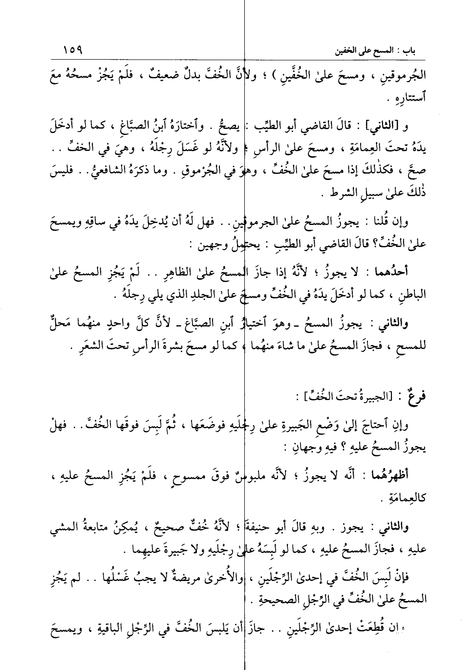 ] : وإن احتاج إلى وضع الجبيرة على رجليه فوضعها، ثم لبس فوقها الخف، فهل يجوز المسح عليه؟ فيه وجهان: