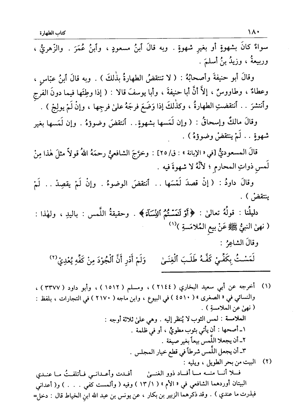 وقال مالك وإسحاق: (وإن لمسها بشهوة انتقض وضوؤه. وإن لمسها بغير شهوة لم ينتقض وضوؤه) .