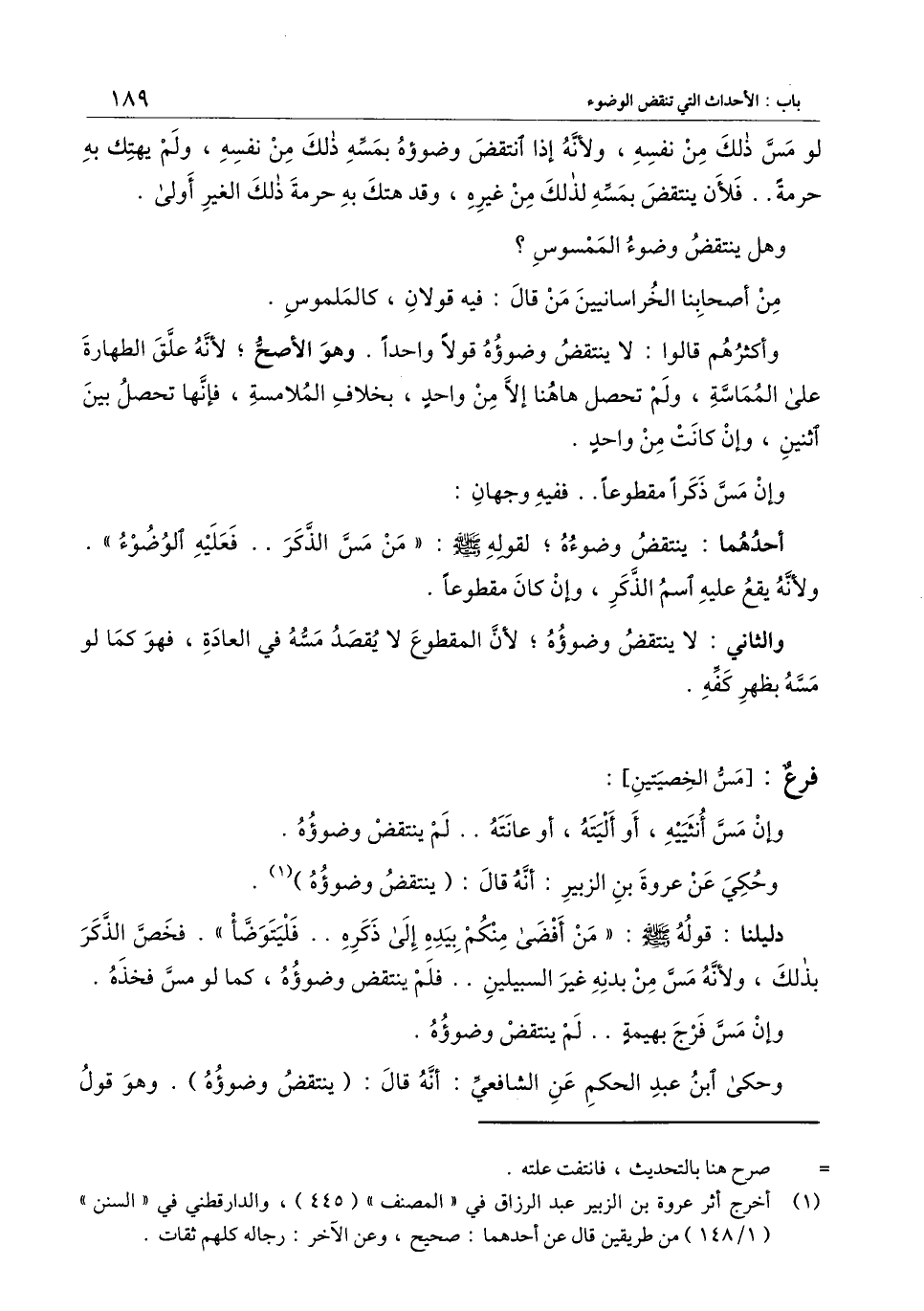 ] : وإن مس أنثييه، وأليته، أو عانته لم ينتقض وضوؤه.
