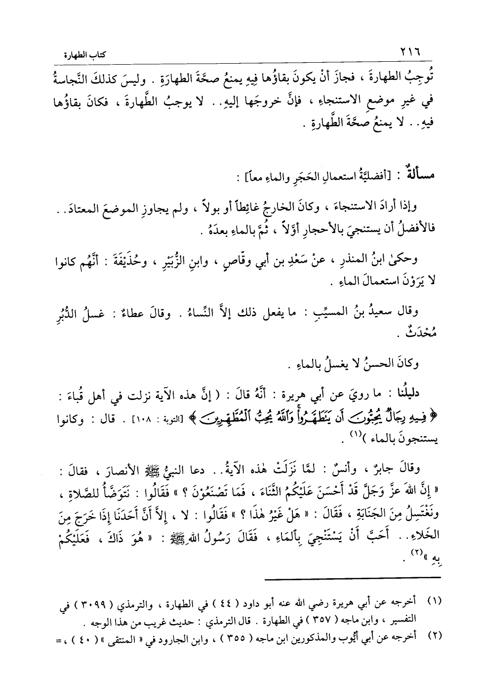 [مسألة: أفضلية استعمال الحجر والماء معًا]