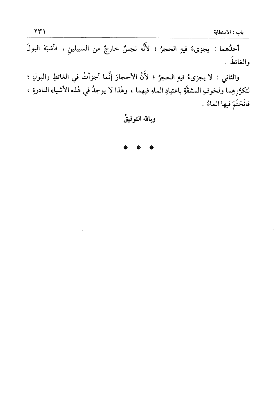 والثاني: لا يجزئ فيه الحجر؛ لأن الأحجار إنما أجزأت في الغائط والبول؛ لتكررهما ولخوف المشقة باعتياد الماء فيهما، وهذا لا يوجد في هذه الأشياء النادرة، فانحتم فيها الماء.