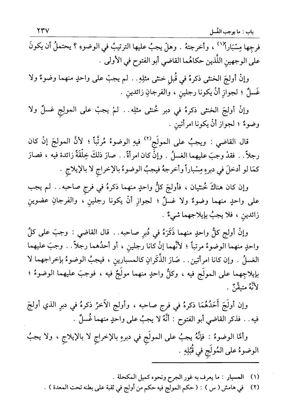 وإن أولج الخنثى ذكره في دبر خنثى مثله لم يجب على المولج غسل ولا وضوء؛ لجواز أن يكونا امرأتين.