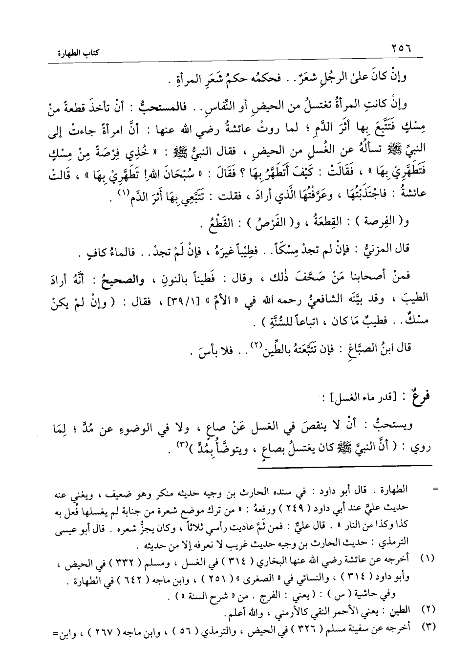 وإن كانت المرأة تغتسل من الحيض أو النفاس فالمستحبّ: أن تأخذ قطعة من مسكٍ فتتبع بها أثر الدّم؛ لما روت عائشة - رَضِيَ اللَّهُ عَنْهَا -: «أن امرأة جاءت إلى النبي - صَلَّى اللَّهُ عَلَيْهِ وَسَلَّمَ - تسأله عن الغسل من الحيض، فقال النبي - صَلَّى اللَّهُ عَلَيْهِ وَسَلَّمَ -: " خذي فرصةً من مسكٍ فتطهري بها "، فقالت: كيف أتطهر بها؟ فقال: " سبحان الله! تطهري بها " قالت عائشة: فاجتذبتها، وعرَّفتها الذي أراد، فقلت: تتبعي بها أثر الدّم» .