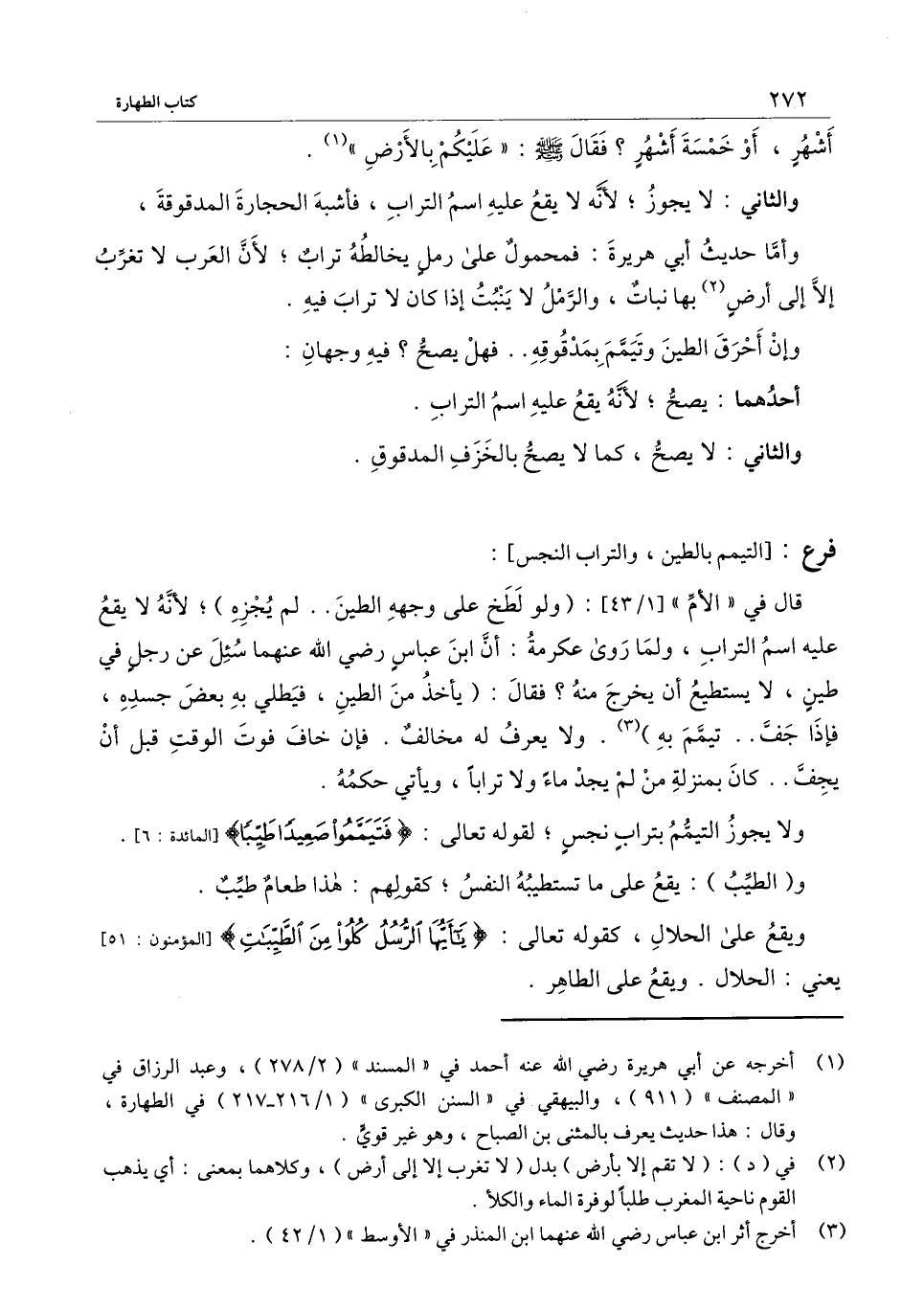 ] : قال في " الأم " [1/43] : (ولو لطخ على وجهه الطين.. لم يجزه) ؛ لأنه لا يقع عليه اسم التراب، ولما روى عكرمة: أن ابن عباس - رَضِيَ اللَّهُ عَنْهُمَا - سئل عن رجل في طين، لا يستطيع أن يخرج منه؟ فقال: (يأخذ من الطين، فيطلي به بعض جسده، فإذا جفّ.. تيمّم به) . ولا يعرف له مخالف. فإن خاف فوت الوقت قبل أن يجفّ.. كان بمنزلة من لم يجد ماءً ولا ترابًا، ويأتي حكمه.