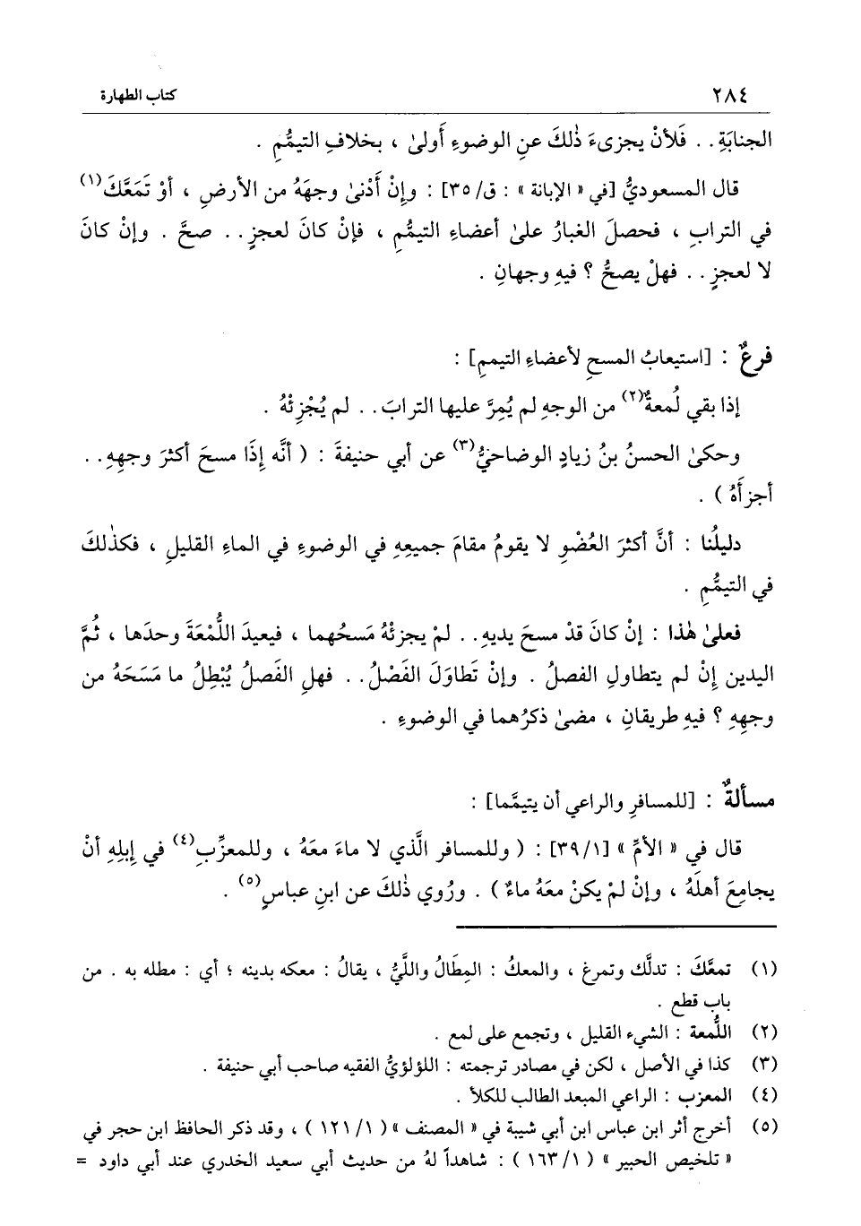 [فرع: استيعاب المسح لأعضاء التيمم]