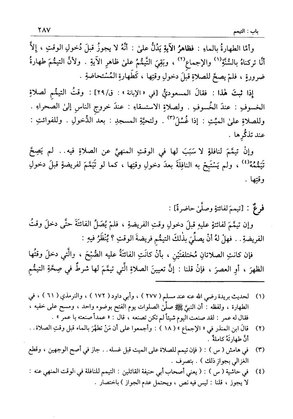 وأما الطهارة بالماء: فظاهر الآية يدل على: أنه لا يجوز قبل دخول الوقت، إلا أنا تركناه بالسنة والإجماع، وبقي التيمم على ظاهر الآية. ولأن التيمم طهارة ضرورة، فلم يصح للصلاة قبل دخول وقتها، كطهارة المستحاضة.