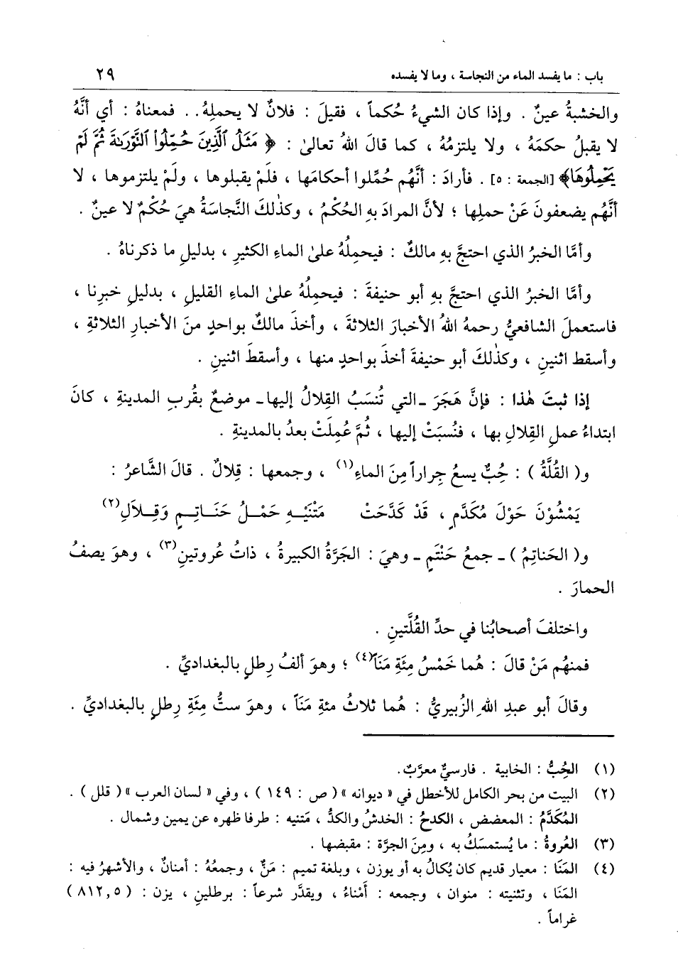 واختلف أصحابنا في حد القلتين.