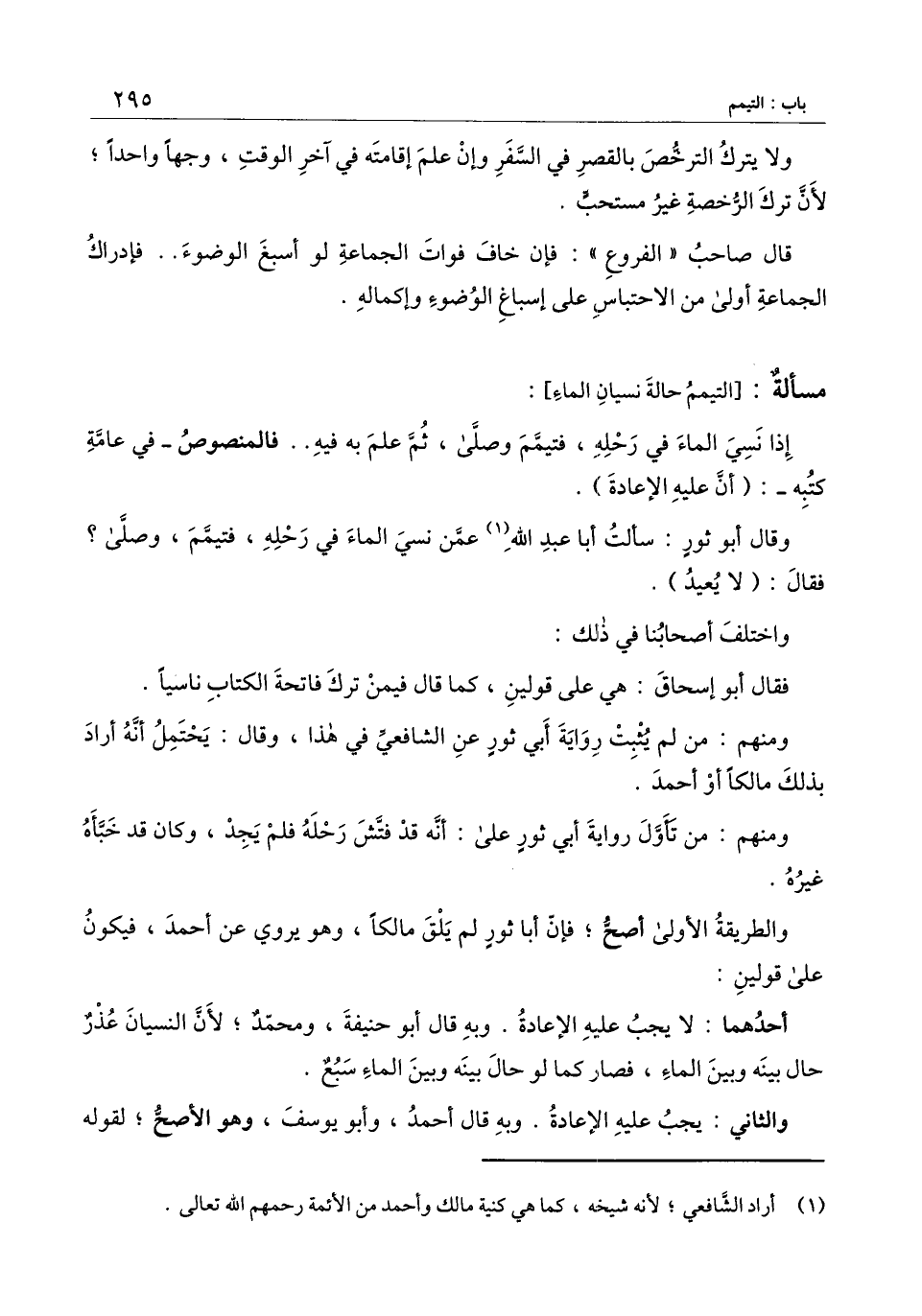 ومنهم: من لم يثبت رواية أبي ثور عن الشافعي في هذا، وقال: يحتمل أنه أراد بذلك مالكا أو أحمد.
