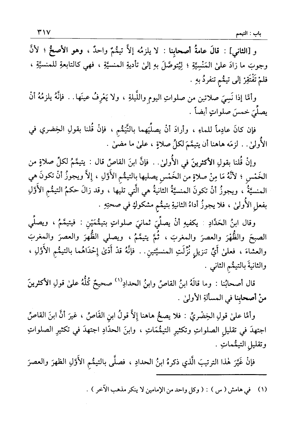 وأما على قول الخضري: فلا يصح هاهنا إلا قول ابن القاص، غير أن ابن القاص اجتهد في تقليل الصلوات وتكثير التيممات، وابن الحداد اجتهد في تكثير الصلوات وتقليل التيممات.