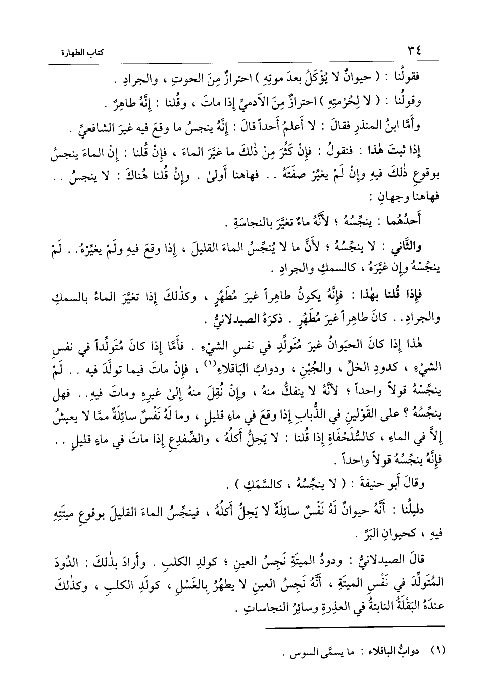 دليلنا: أنه حيوان له نفس سائلة لا يحل أكله، فينجس الماء القليل بوقوع ميتته فيه، كحيوان البر.