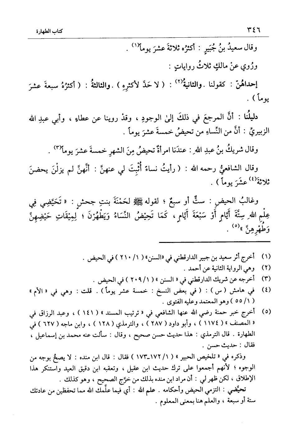 وقال الشافعي - رَحِمَهُ اللَّهُ -: (رأيت نساء أثبت لي عنهن: أنهن لم يزلن يحضن ثلاثة عشر يومًا) .