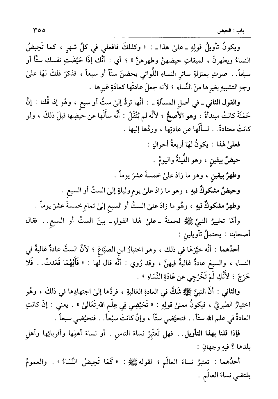 وأما تخيير النبي - صَلَّى اللَّهُ عَلَيْهِ وَسَلَّمَ - لحمنة ـ على هذا القول ـ بين الست أو السبع.. فقال أصحابنا: يحتمل تأويلين: