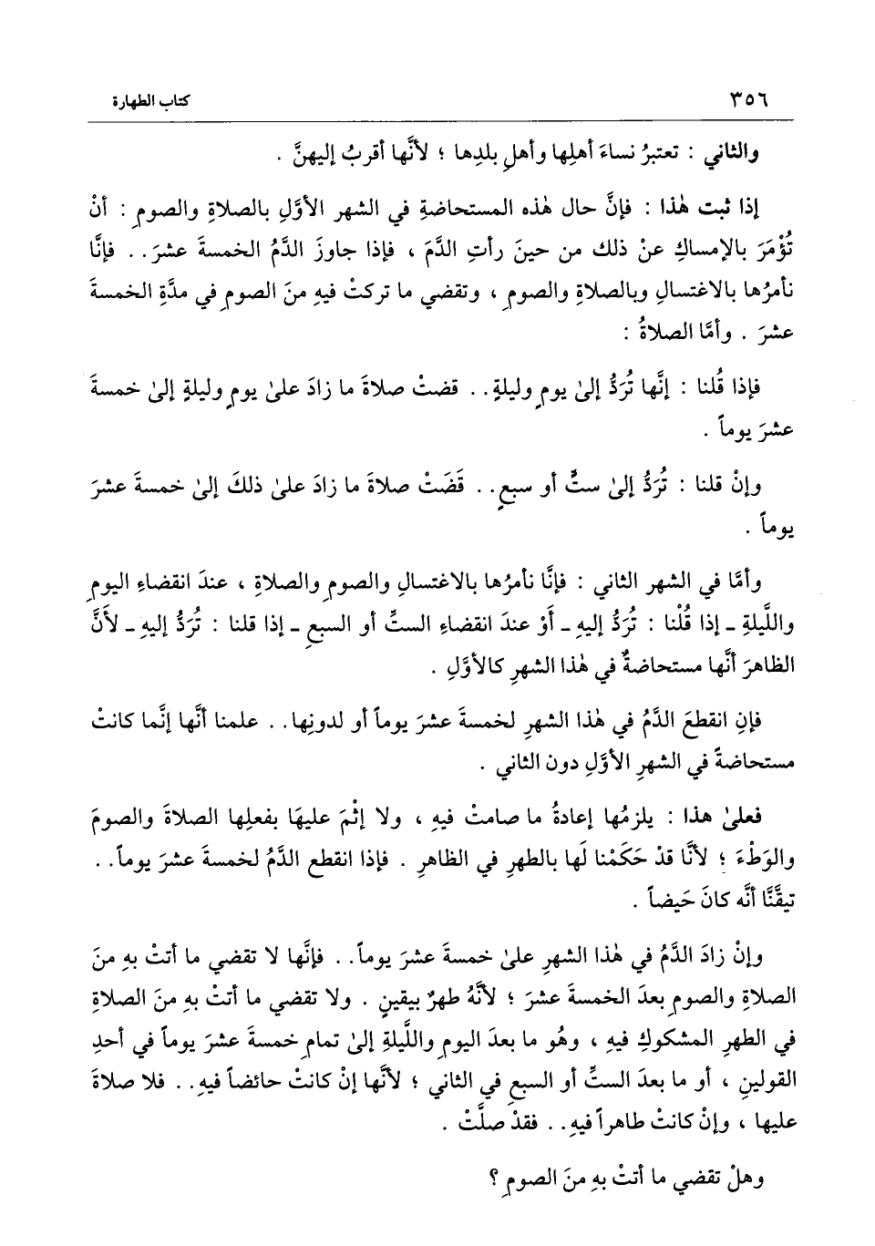 وأما في الشهر الثاني: فإنا نأمرها بالاغتسال والصوم والصلاة، عند انقضاء اليوم والليلة ـ إذا قلنا: ترد إليه ـ أو عند انقضاء الست أو السبع ـ إذا قلنا: ترد إليه ـ لأن الظاهر أنها مستحاضة في هذا الشهر كالأول.