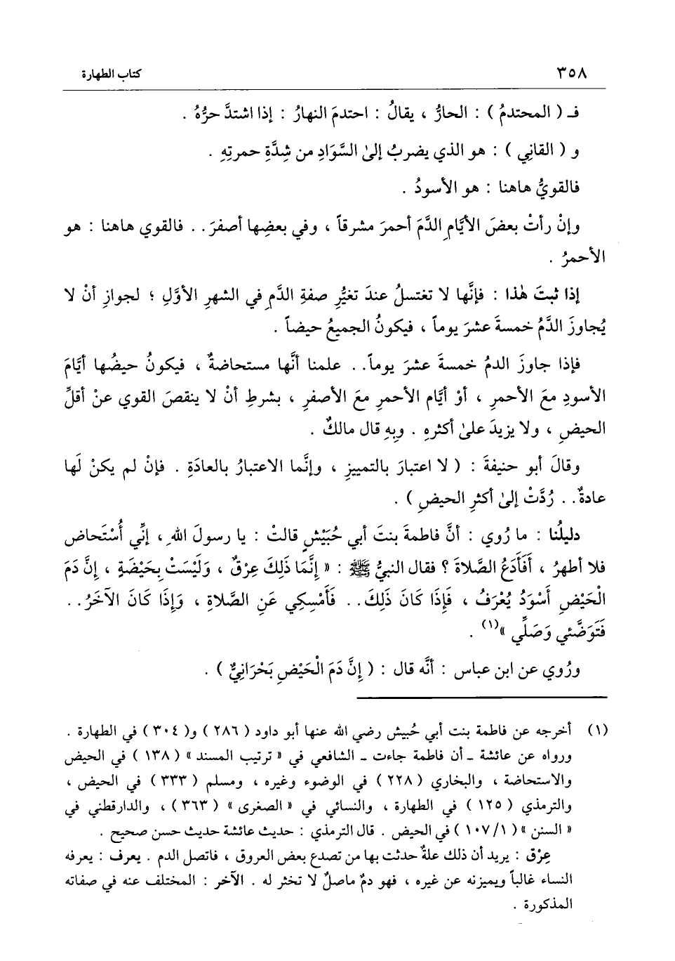 دليلنا: ما روي: «أن فاطمة بنت أبي حبيش قالت: يا رسول الله، إني أستحاض فلا أطهر، أفأدع الصلاة؟ فقال النبي - صَلَّى اللَّهُ عَلَيْهِ وَسَلَّمَ - اأ: "إنما ذلك عرق، وليست بحيضة، إن دم الحيض أسود يعرف، فإذا كان ذلك.. فأمسكي عن الصلاة، وإذا كان الآخر.. فتوضئي وصلي» .