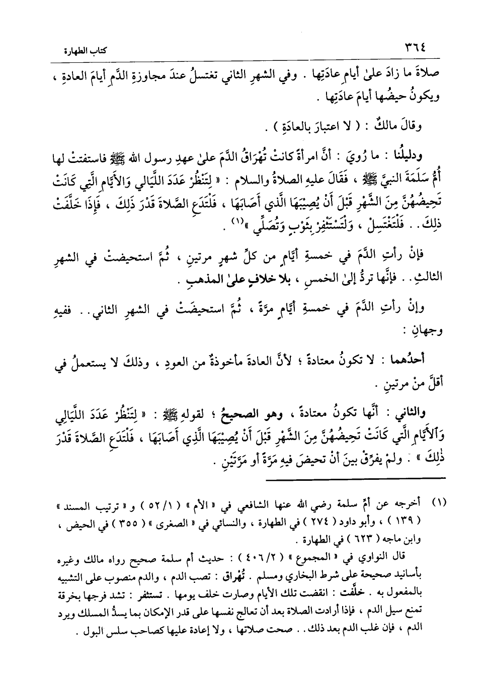 ودليلنا: ما روي: «أن امرأة كانت تهراق الدم على عهد رسول الله - صَلَّى اللَّهُ عَلَيْهِ وَسَلَّمَ - فاستفتت لها أم سلمة النبي - صَلَّى اللَّهُ عَلَيْهِ وَسَلَّمَ -، فقال - عَلَيْهِ الصَّلَاةُ وَالسَّلَامُ -: "لتنظر عدد الليالي والأيام التي كانت تحيضهن من الشهر قبل أن يصيبها الذي أصابها، فلتدع الصلاة قدر ذلك، فإذا خلفت ذلك.. فلتغتسل، ولتستثفر بثوب وتصلي» .