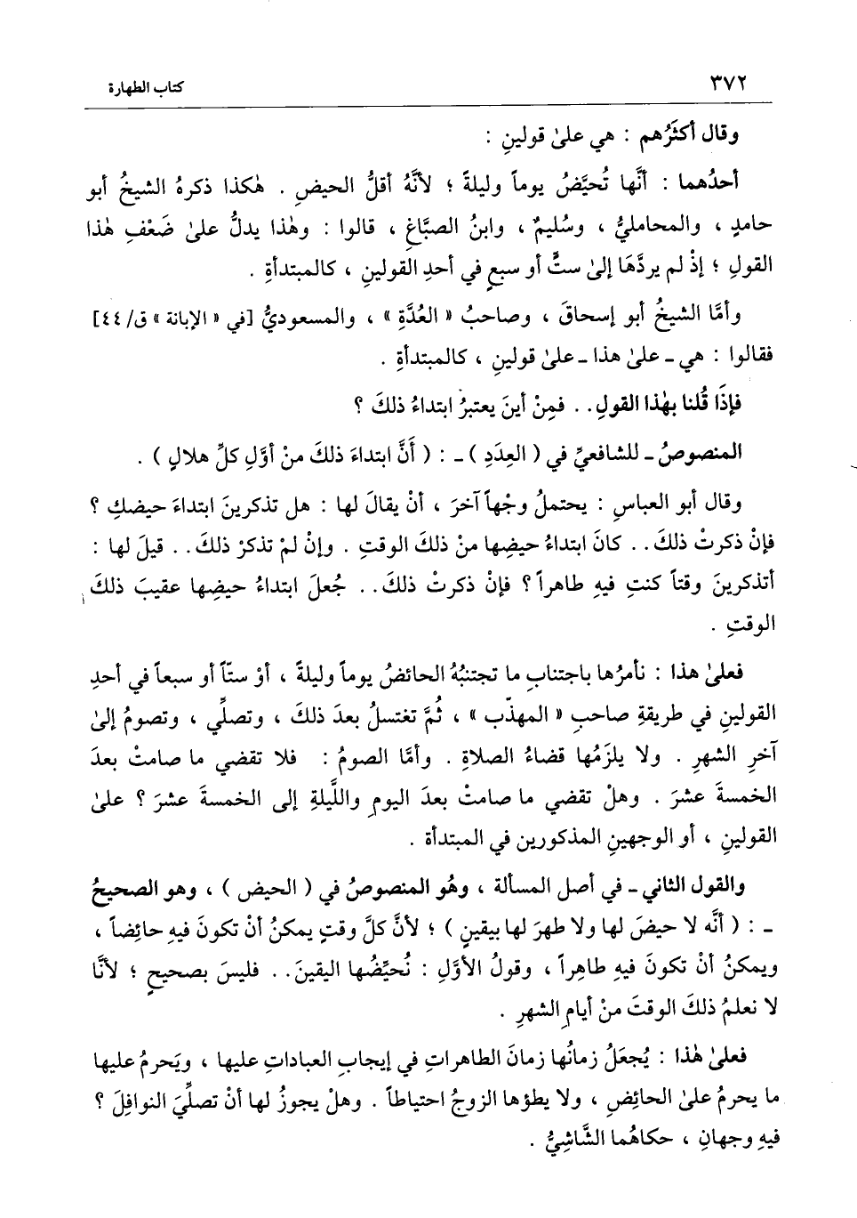 والقول الثاني ـ في أصل المسألة، وهو المنصوص في (الحيض) ، وهو الصحيح ـ: (أنه لا حيض لها ولا طهر لها بيقين) ؛ لأن كل وقت يمكن أن تكون فيه حائضًا، ويمكن أن تكون فيه طاهرًا، وقول الأول: نحيضها اليقين.. فليس بصحيح؛ لأنا لا نعلم ذلك الوقت من أيام الشهر.