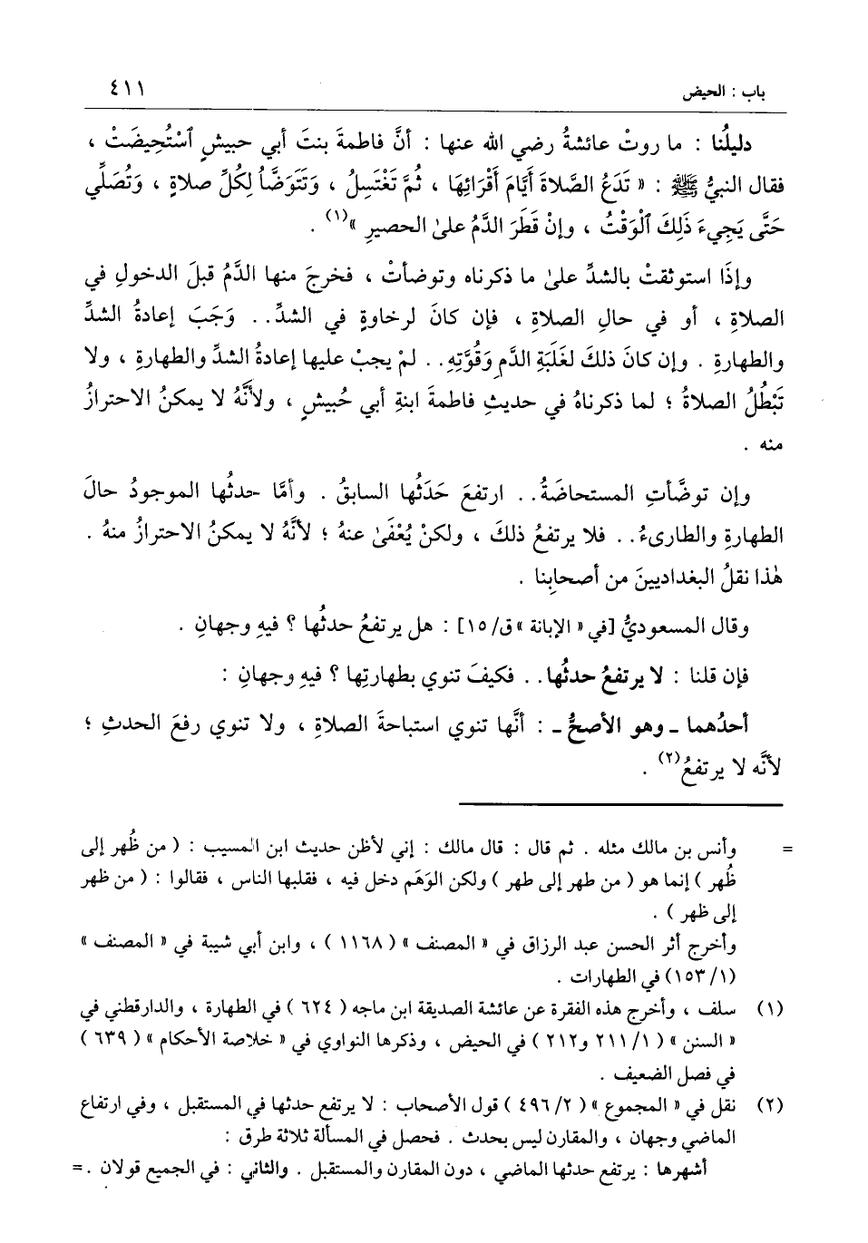 دليلنا: ما روت عائشة - رَضِيَ اللَّهُ عَنْهَا -: أن فاطمة بنت أبي حبيس استحيضت، فقال النبي - صَلَّى اللَّهُ عَلَيْهِ وَسَلَّمَ -: «تدع الصلاة أيام أقرائها، ثم تغتسل، وتتوضأ لكل صلاة، وتصلي حتى يجيء ذلك الوقت، وإن قطر الدم على الحصير» .