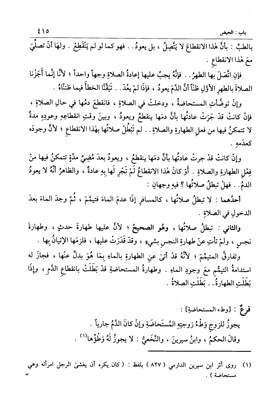 ] : يجوز للزوج وطء زوجته المستحاضة وإن كان الدم جاريًا.