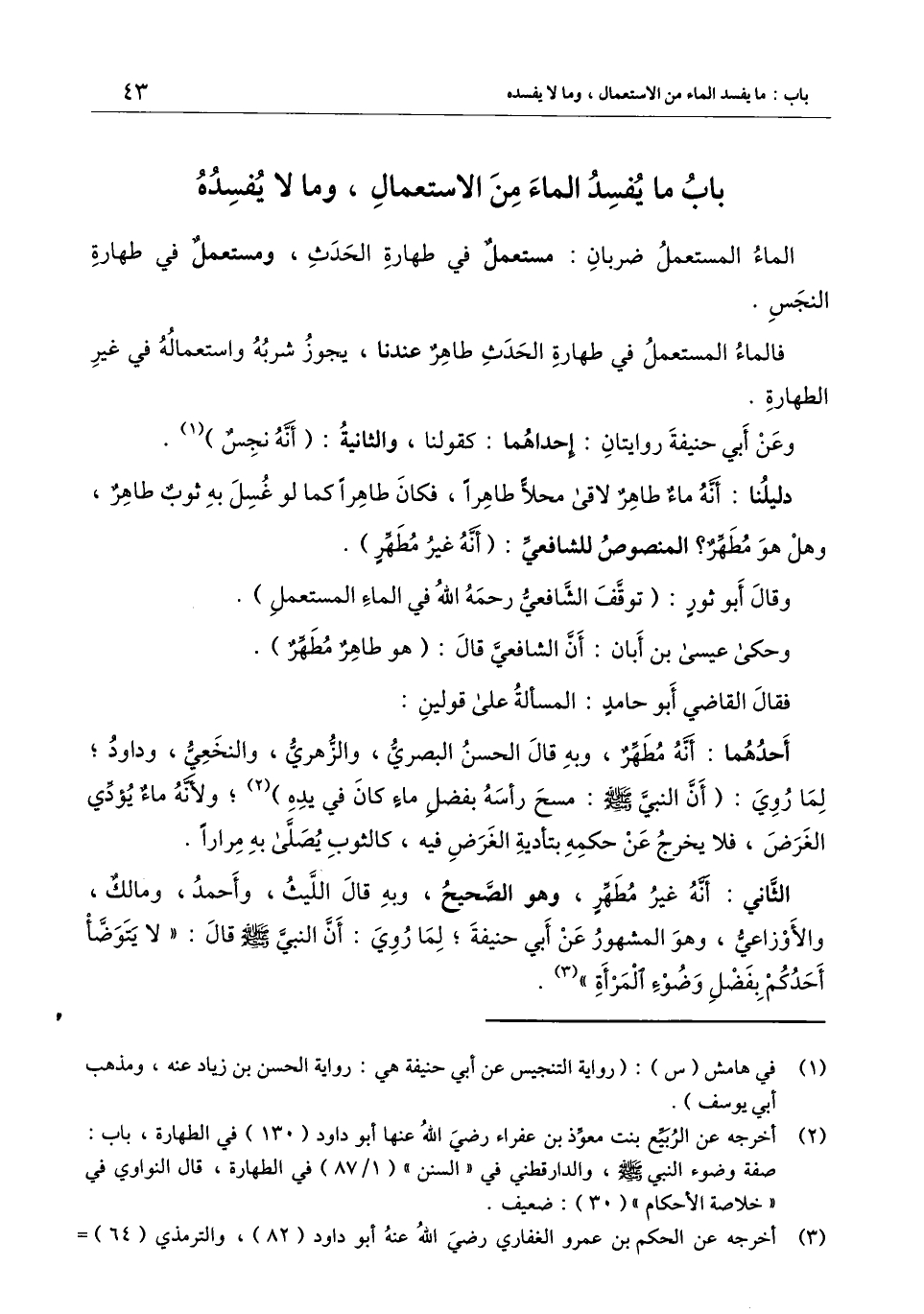 [باب ما يفسد الماء من الاستعمال وما لا يفسده]