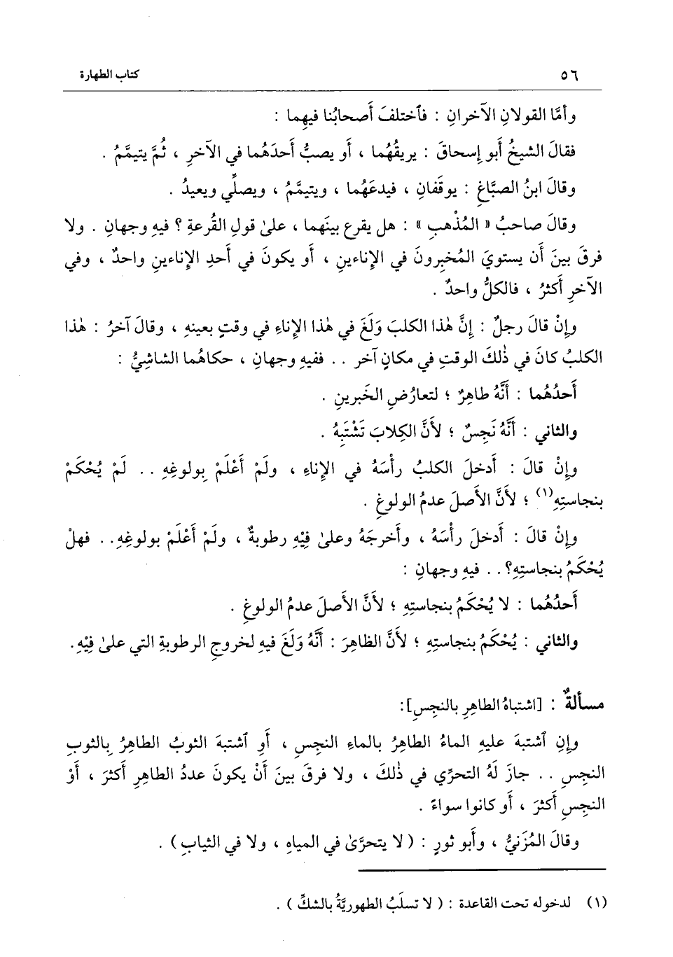 والثاني: يحكم بنجاسته؛ لأن الظاهر: أنه ولغ فيه لخروج الرطوبة التي على فيه.