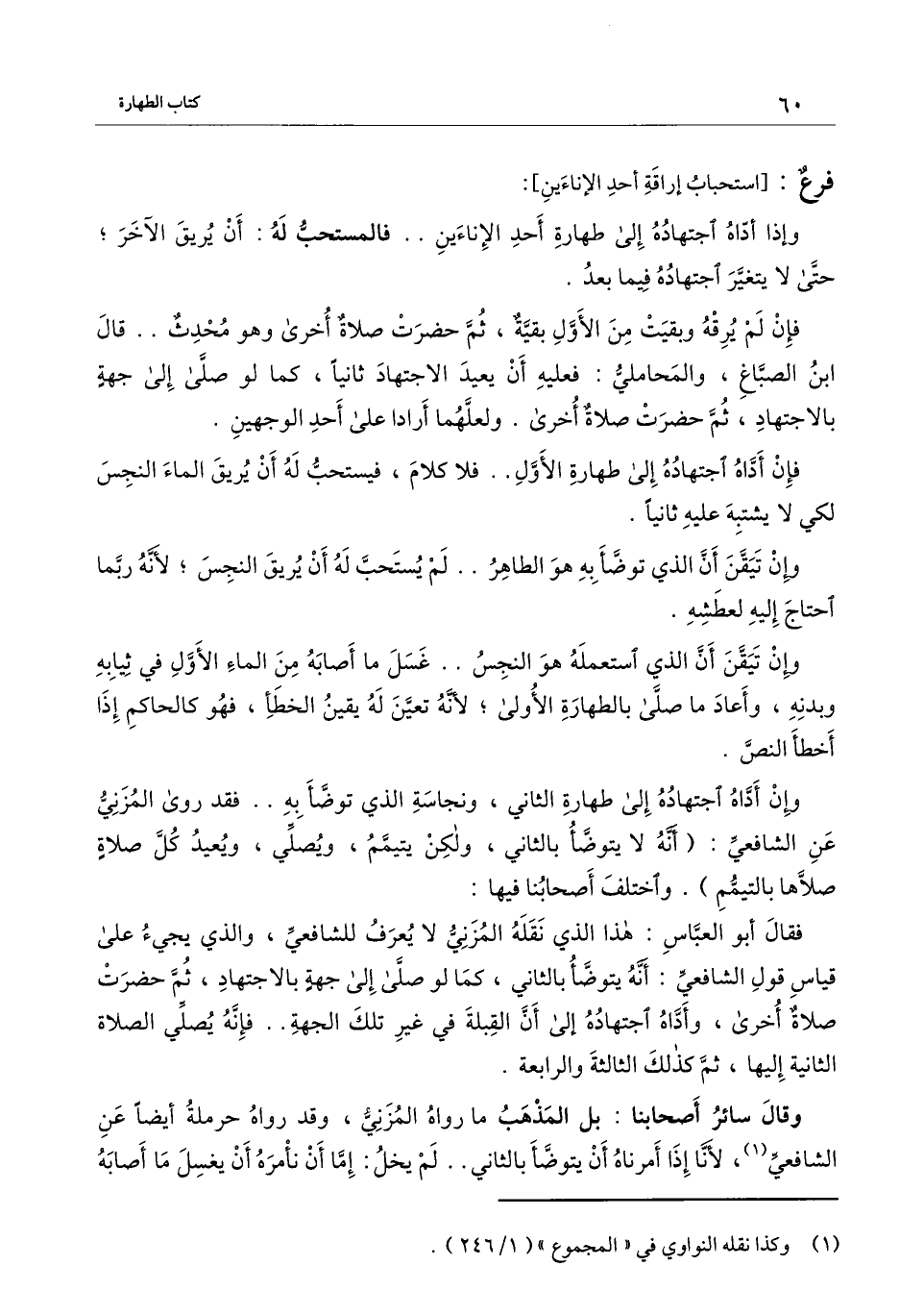 فقال أبو العباس: هذا الذي نقله المزني لا يعرف للشافعي، والذي يجيء على قياس قول الشافعي: أنه يتوضأ بالثاني، كما لو صلى إلى جهة بالاجتهاد ثم حضرت صلاة أخرى، وأداه اجتهاده إلى أن القبلة في غير تلك الجهة.. فإنه يصلي الصلاة الثانية إليها، ثم كذلك الثالثة والرابعة.
