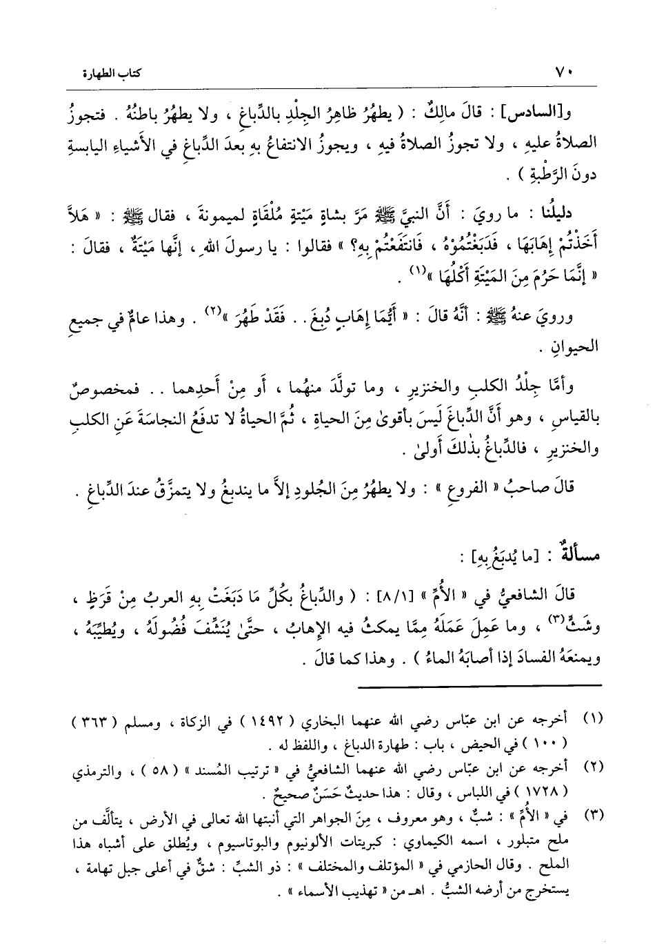 وروي عنه - صَلَّى اللَّهُ عَلَيْهِ وَسَلَّمَ - أنه قال: «أيما إهاب دبغ.. فقد طهر» . وهذا عام في جميع الحيوان.