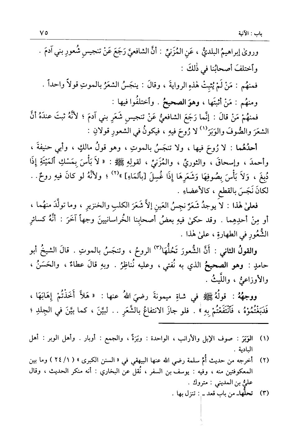 فمنهم من قال: إنما رجع الشافعي عن تنجيس شعر بني آدم؛ لأنه ثبت عنده أن الشعر والصوف والوبر لا روح فيه، فيكون في الشعور قولان: