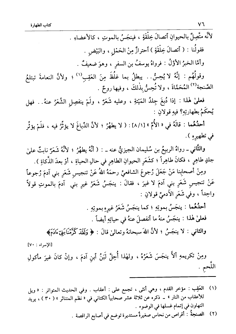 ومن تكريمه ألا ينجس شعره، ولهذا أحل لبن ابن آدم، وإن كان غير مأكول اللحم.