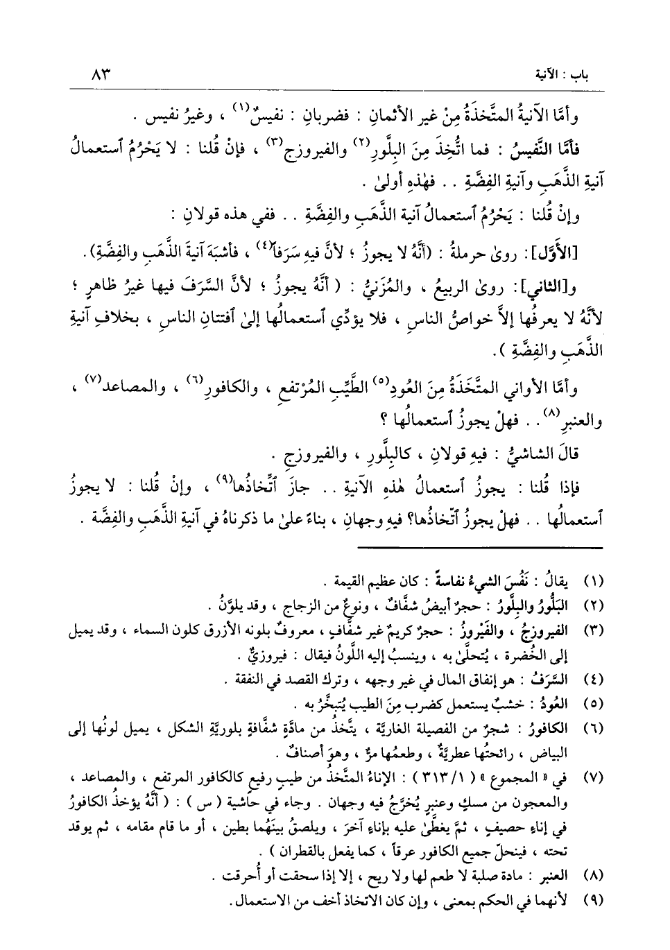 وأما الآنية المتخذة من غير الأثمان: فضربان: نفيس، وغير نفيس.