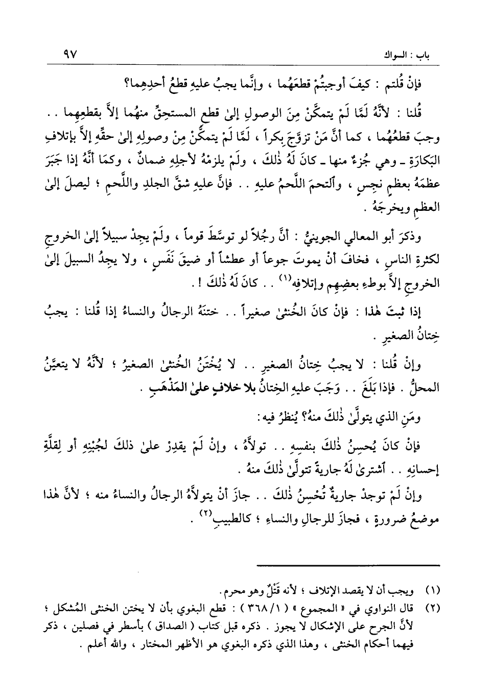 قلنا: لأنه لما لم يتمكن من الوصول إلى قطع المستحق منهما إلا بقطعها.. وجب قطعهما، كما أن من تزوج بكرًا، لما لم يتمكن من وصوله إلى حقه إلا بإتلاف البكارة - وهي جزء منها - كان له ذلك، ولم يلزمه لأجله ضمان، وكما أنه إذا جبر عظمه بعظم نجس، والتحم اللحم عليه.. فإنه عليه شق الجلد واللحم؛ ليصل إلى العظم ويخرجه.