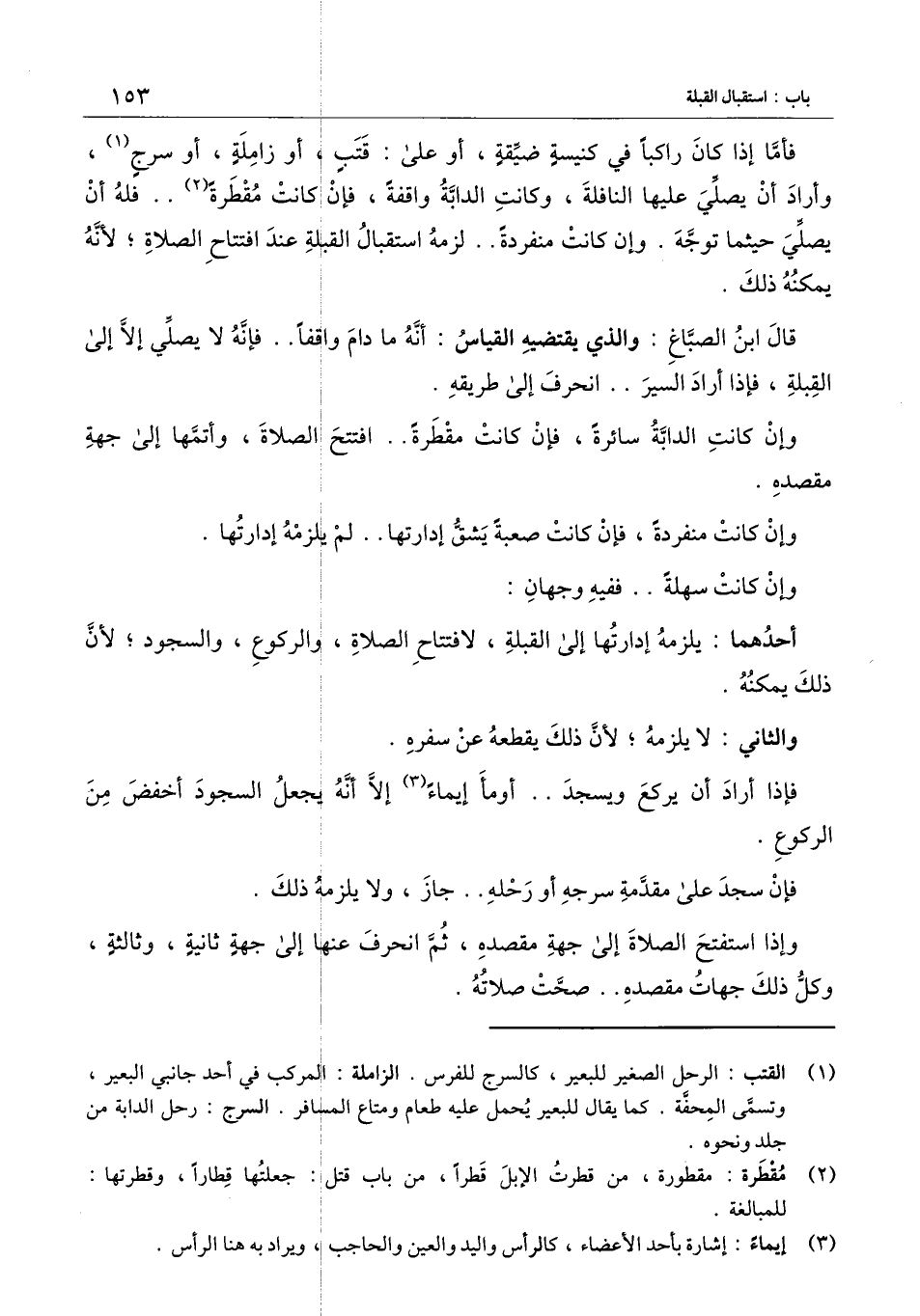 قال ابن الصباغ: والذي يقتضيه القياس: أنه ما دام واقفا. . فإنه لا يصلي إلا إلى القبلة، فإذا أراد السير.. انحرف إلى طريقه.