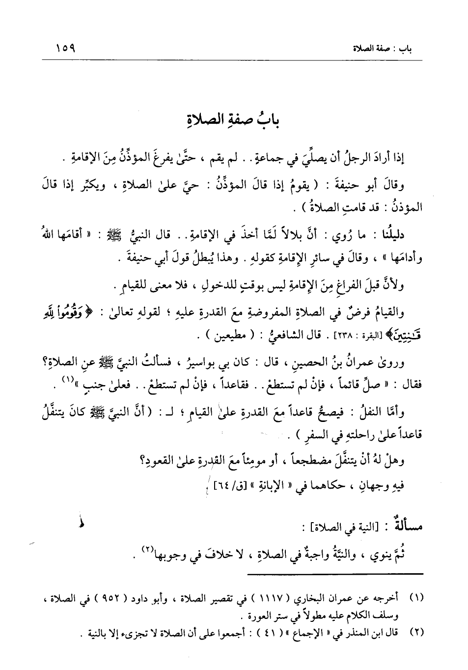 [مسألة النية في الصلاة]