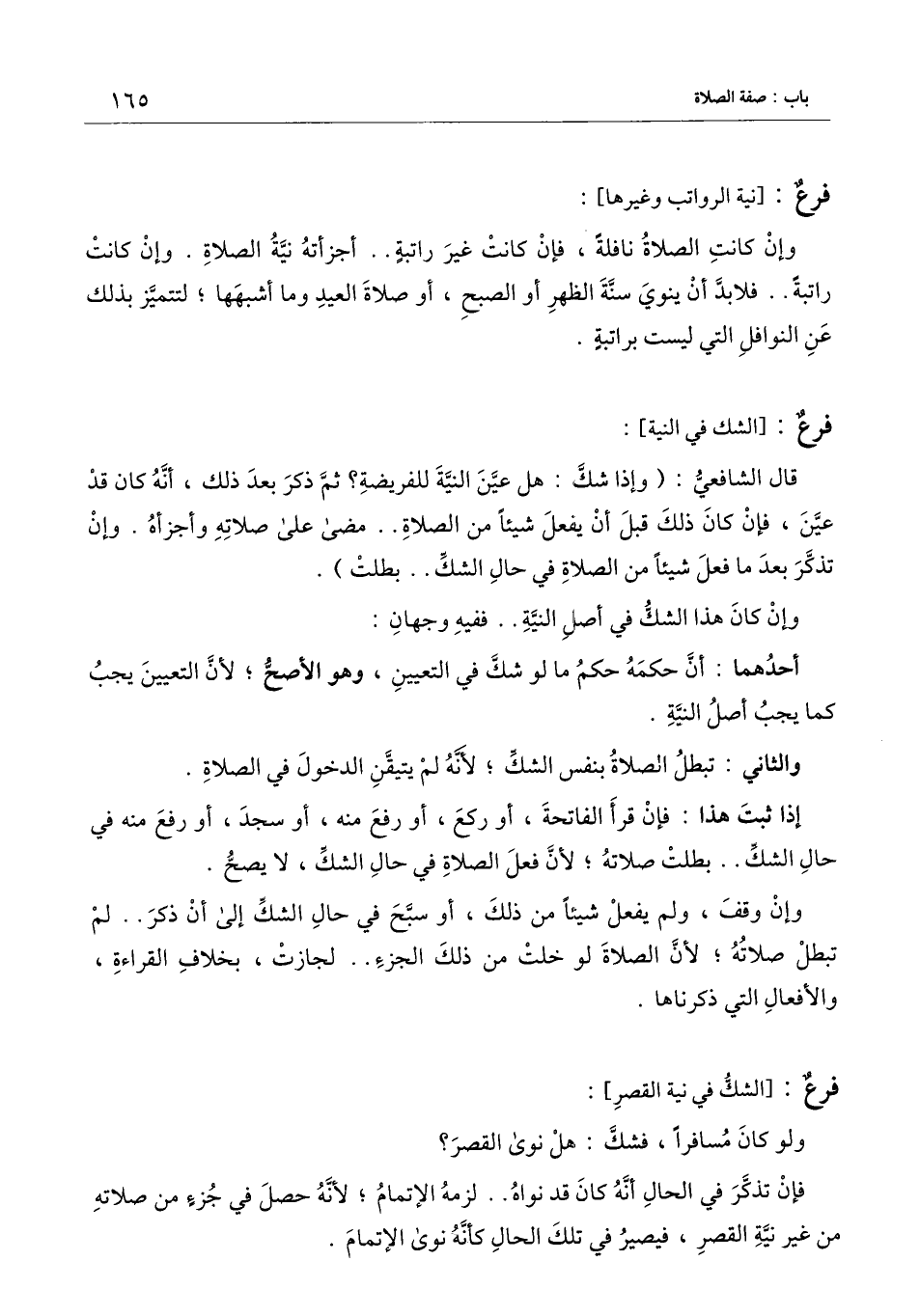 ] . وإن كانت الصلاة نافلة، فإن كانت غير راتبة.. أجزأته نية الصلاة، وإن كانت راتبة.. فلا بد أن ينوي سنة الظهر أو الصبح، أو صلاة العيد وما أشبهها، لتتميز بذلك عن النوافل التي ليست براتبة.