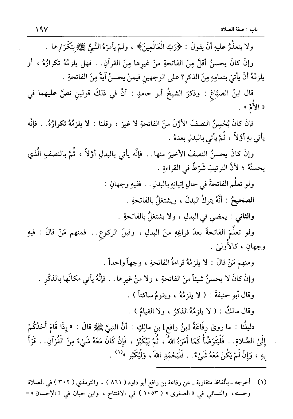دليلنا: ما روى رفاعة [بن رافع] بن مالك: أن النبي - صَلَّى اللَّهُ عَلَيْهِ وَسَلَّمَ - قال: «إذا قام أحدكم إلى الصلاة. . فليتوضأ كما أمره الله، ثم ليكبر، فإن كان معه شيء من القرآن. . قرأ به، وإن لم يكن معه شيء. . فليحمد الله، وليكبر» .