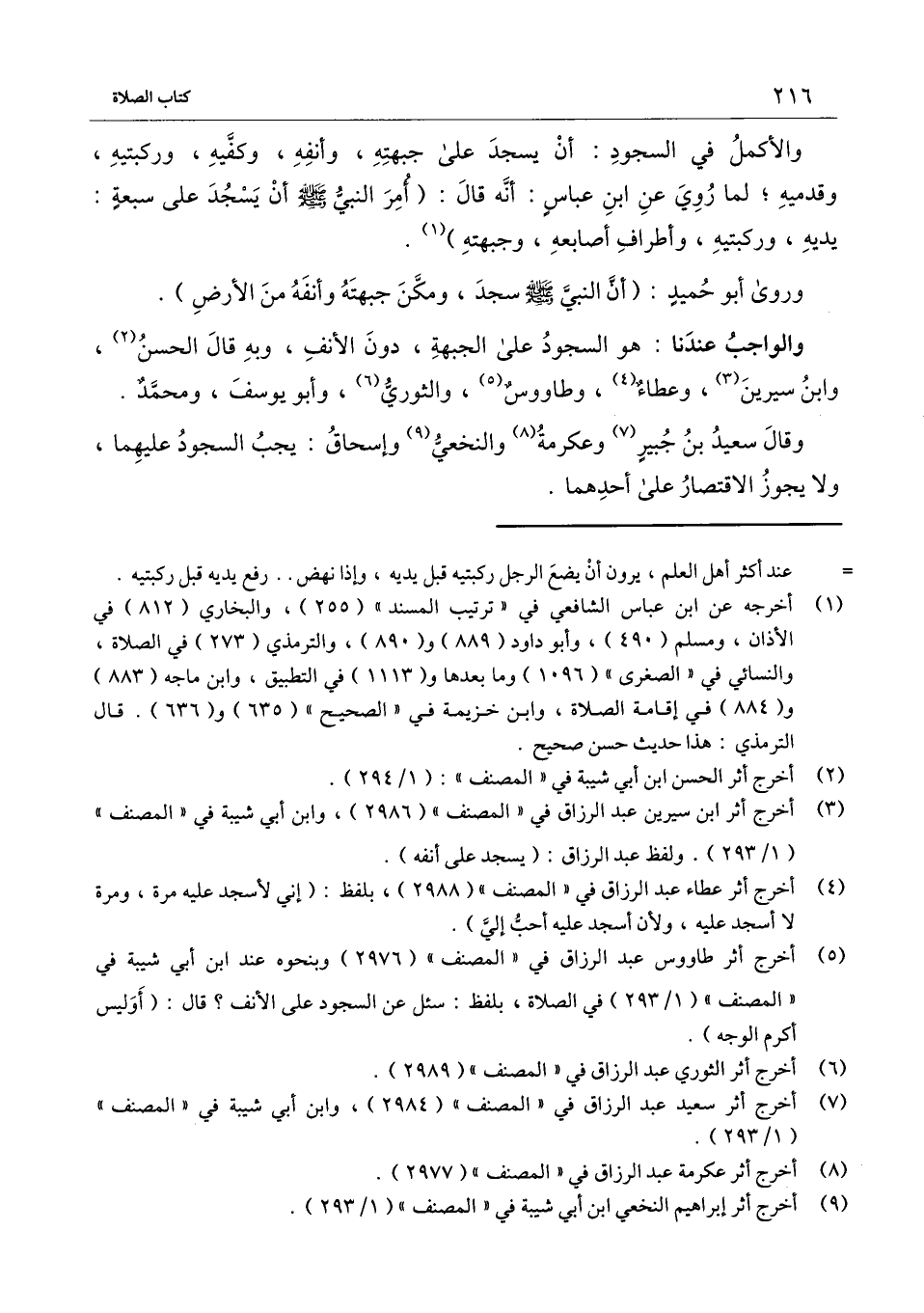 وروى أبو حميد: «أن النبي - صَلَّى اللَّهُ عَلَيْهِ وَسَلَّمَ - سجد، ومكن جبهته وأنفه من الأرض» .