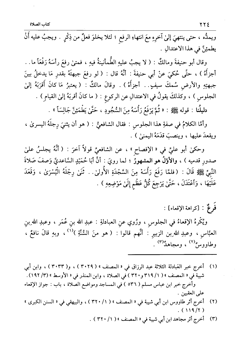 ويكره الإقعاء في الجلوس، وروي عن العبادلة: عبد الله بن عمر، وعبد الله بن العباس، وعبد الله بن الزبير: أنهم قالوا: (هو من السنة) ، وبه قال نافع، وطاوس، ومجاهد.