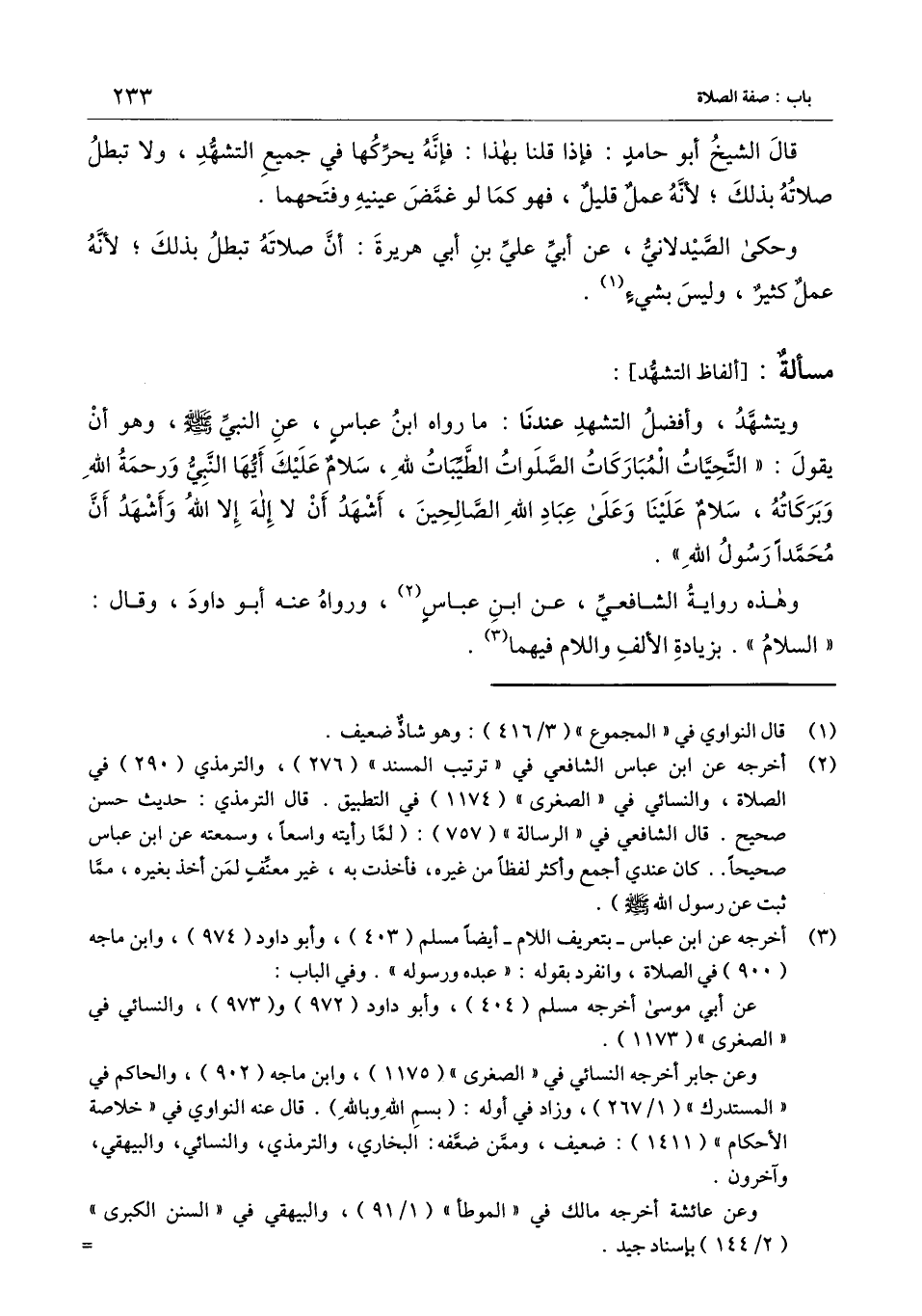 وهذه رواية الشافعي، عن ابن عباس، ورواه عنه أبو داود، وقال: " السلام ". بزيادة الألف واللام فيهما.