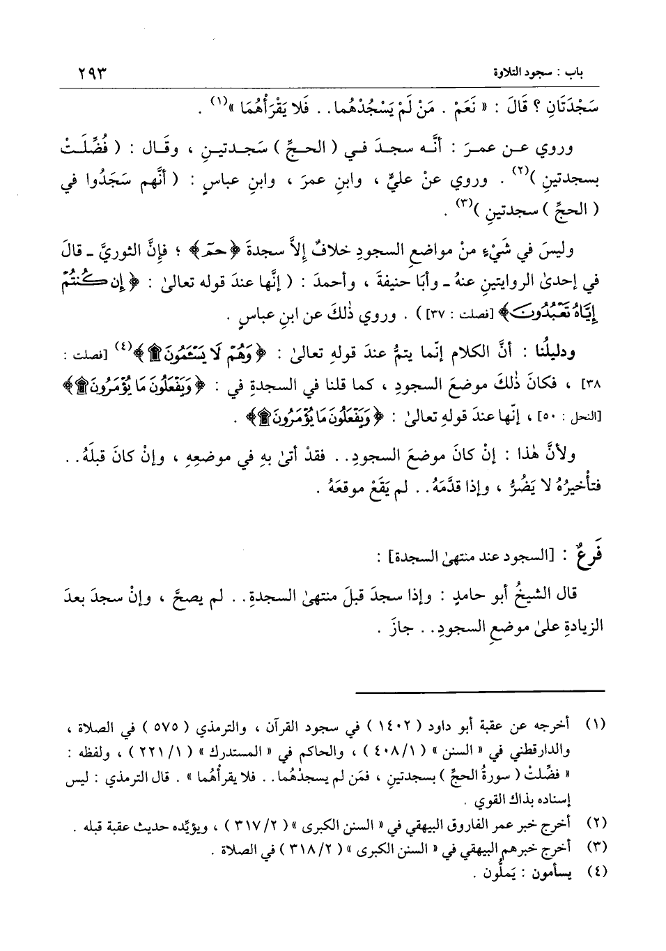 وليس في شيء من مواضع السجود خلاف إلا سجدة حم؛ فإن الثوري - قال في إحدى الروايتين عنه- وأبا حنيفة، وأحمد: (إنها عند قَوْله تَعَالَى: {إِنْ كُنْتُمْ إِيَّاهُ تَعْبُدُونَ} [فصلت: 37] [فصلت: 27] ) . وروي ذلك عن ابن عباس.