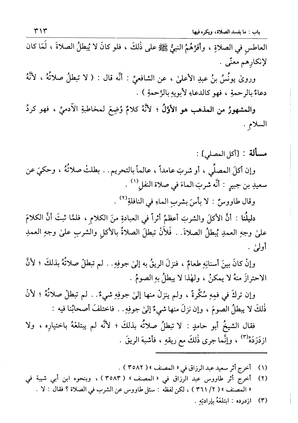 العاطس في الصلاة، واقرَّهم النبي - صَلَّى اللَّهُ عَلَيْهِ وَسَلَّمَ - على ذلك، فلو كان لا يبطل الصلاة، لما كان لإنكارهم معنى.